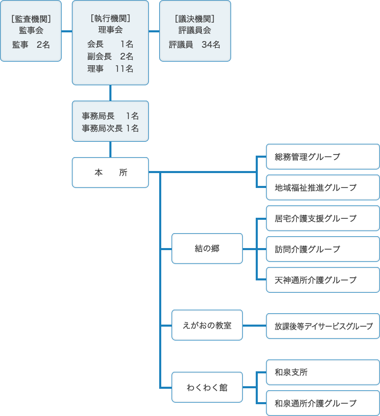 | 役員 | 理事8名、 監事2名、 評議員16名 |